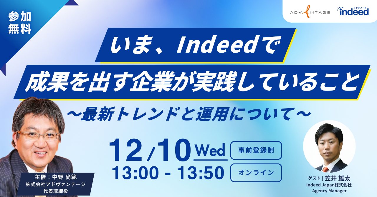 Indeed社の“オフィシャルな視点”と、アドヴァンテージの“現場で培った実践ノウハウ”が理解できるセミナーとなっております。